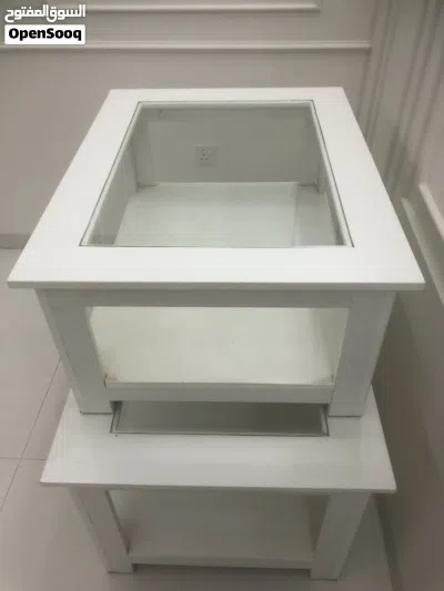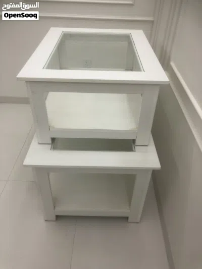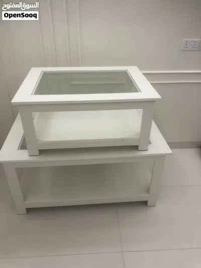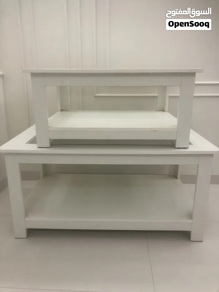 طاولات شبة جديدة وبحالة جيده زجاج في الوسط. مقاس الطاولة الصغيرة 90 في 70